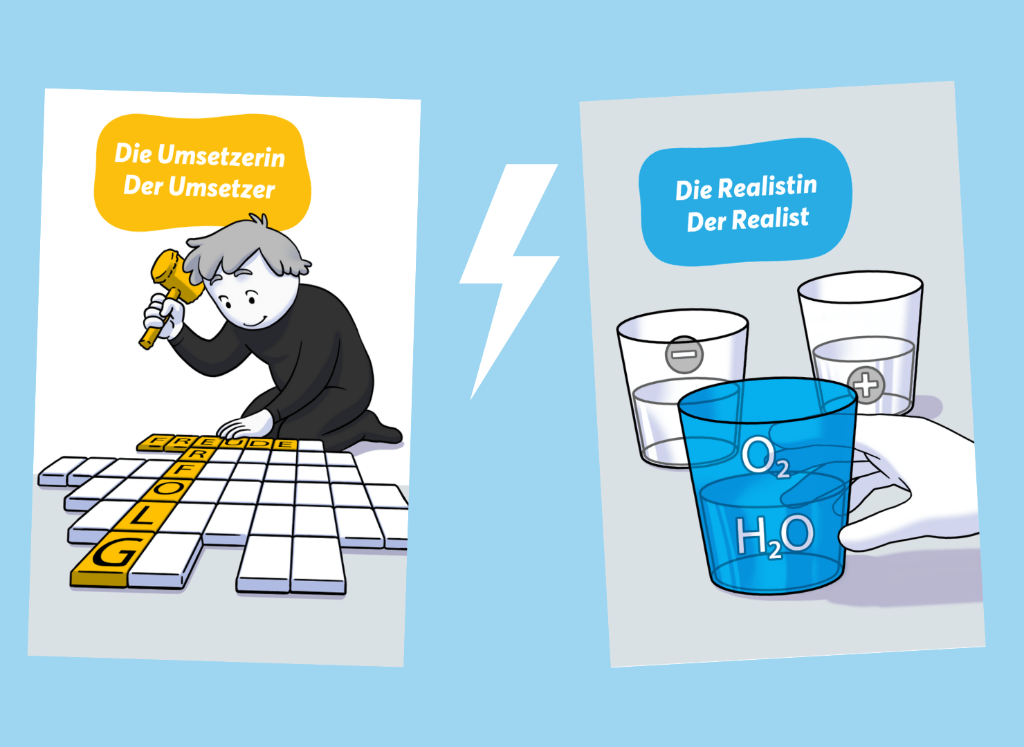 Spieler im Konflikt: Der Umsetzer möchte Leistung zeigen und Dinge voranbringen. Der Realist erkennt: „Egal wie sehr du dich anstrengst – gesehen wirst du hier nicht.“