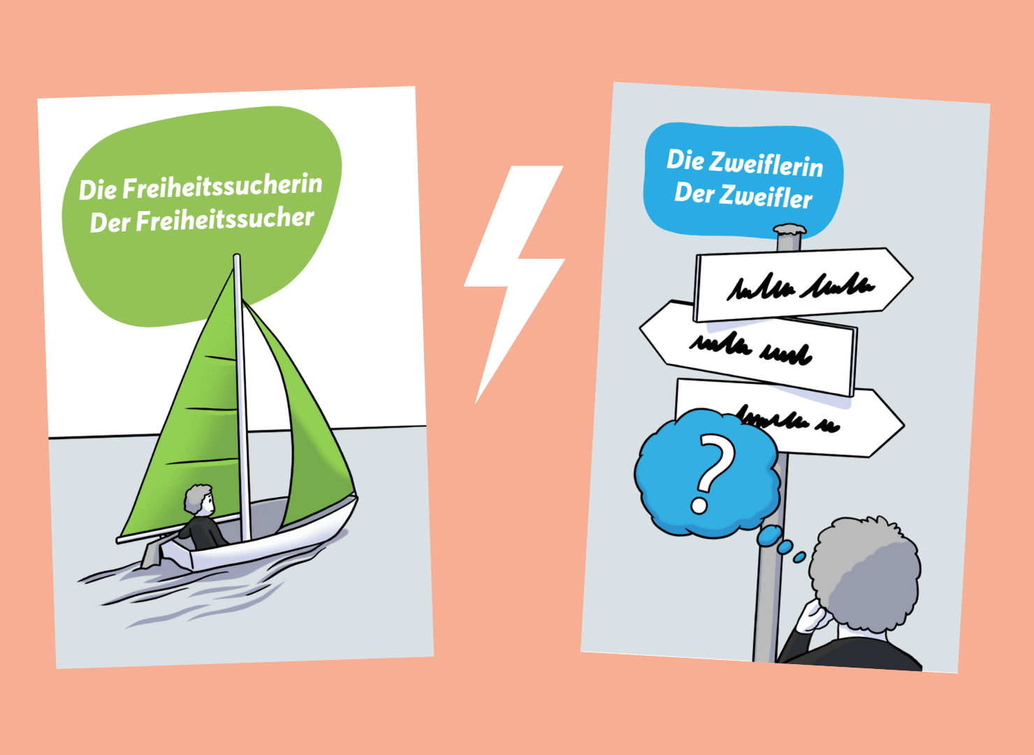 Spieler im Konflikt: Der Freiheitssucher sehnt sich nach Ausstieg oder Veränderung. Der Zweifler flüstert: „Du schaffst das nicht. Was, wenn es woanders noch schlimmer wird?“