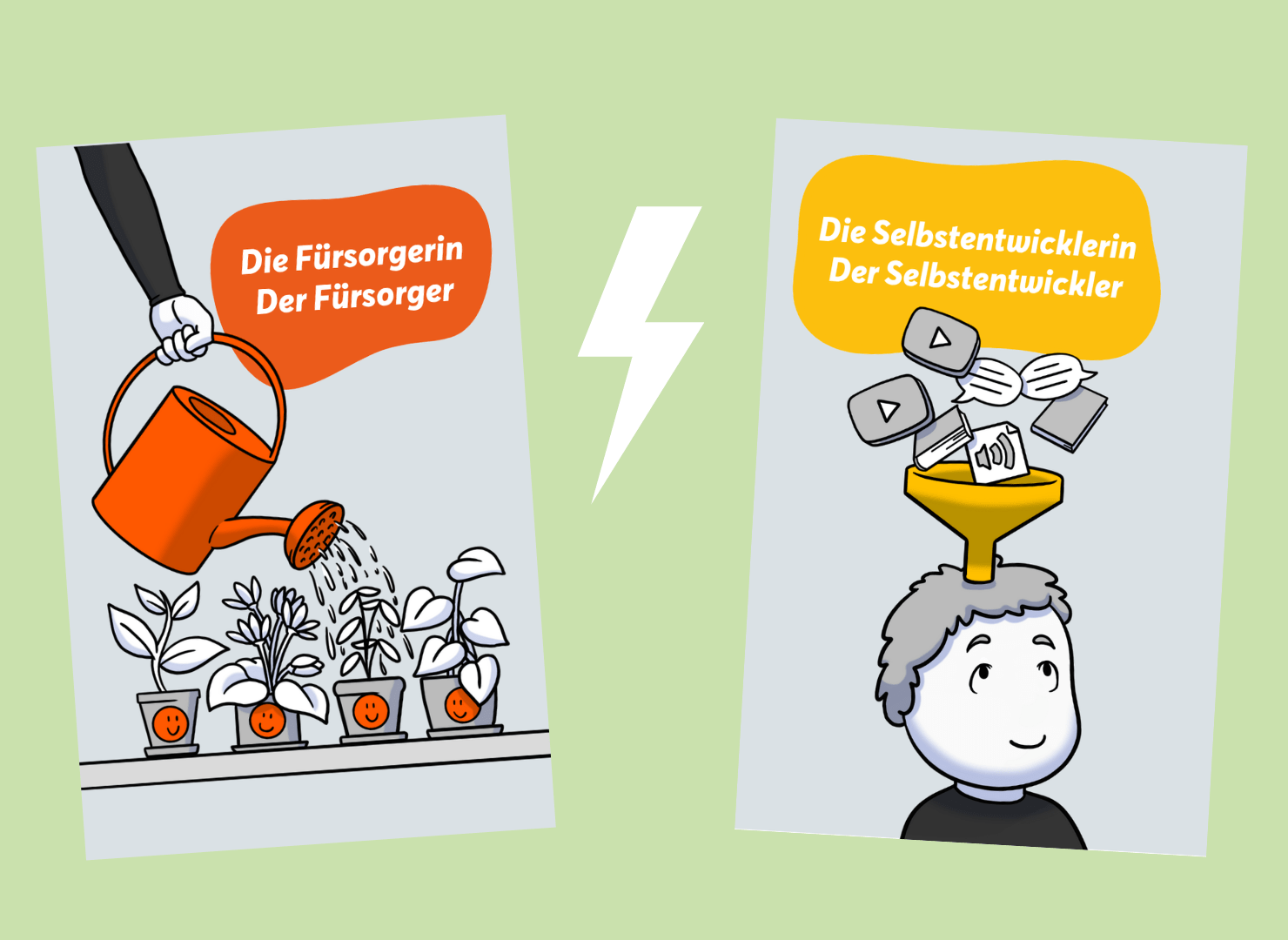Spieler im Konflikt: Der Fürsorger verteilt deine Energie auf andere. Der Selbstentwickler möchte, dass du deine eigenen Projekte voranbringst.
